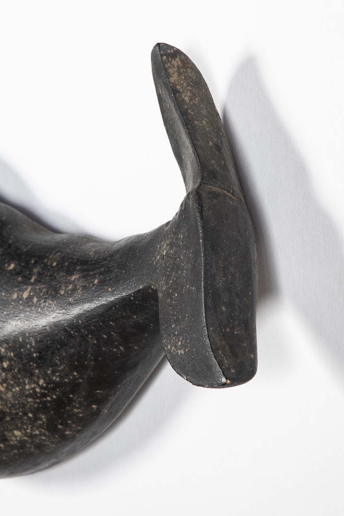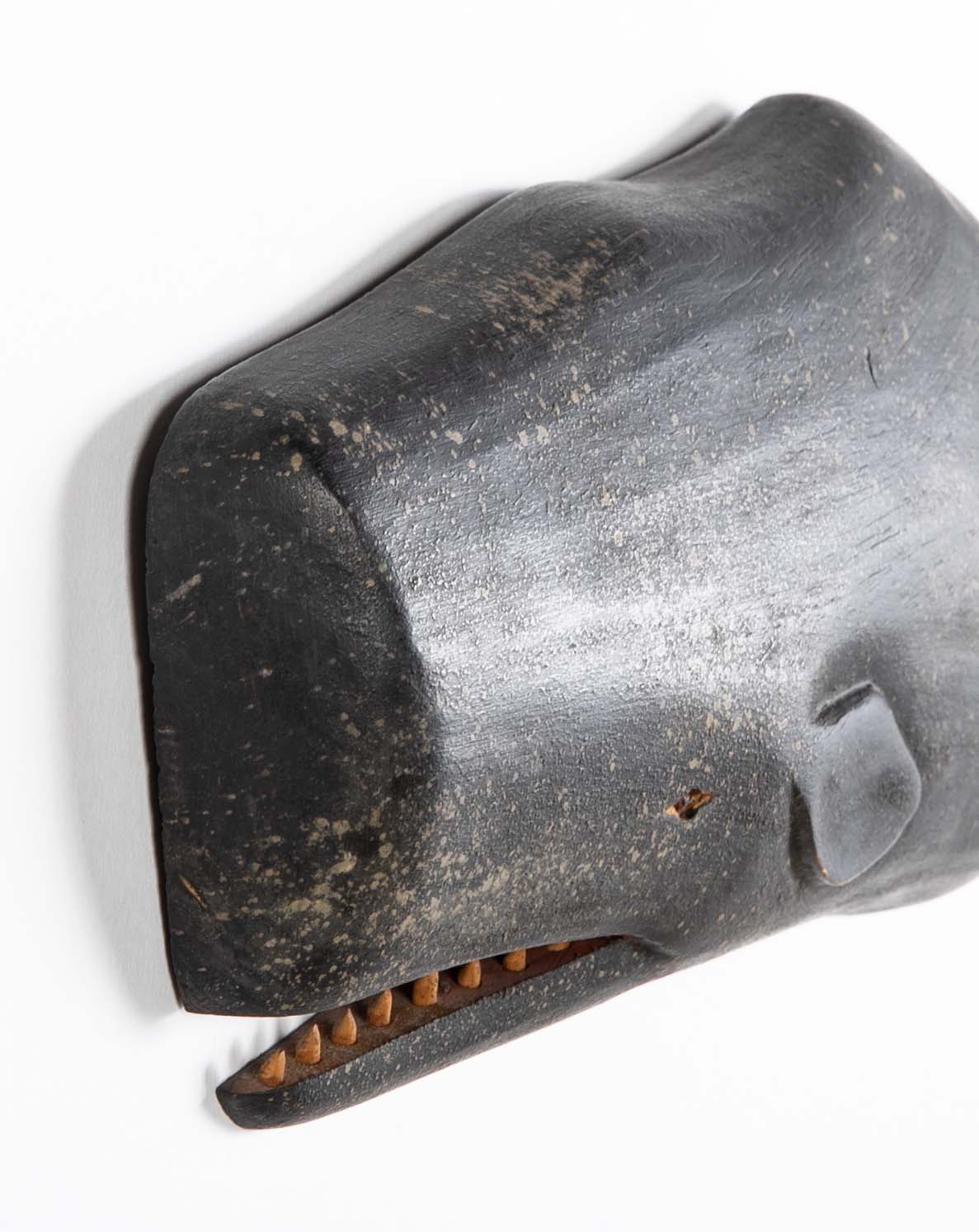 Carved & painted wood sperm whale by Clark G. Voorhees, Jr. ( 1911 - 1980 ). With stamp and monogram. Mid 20th century.