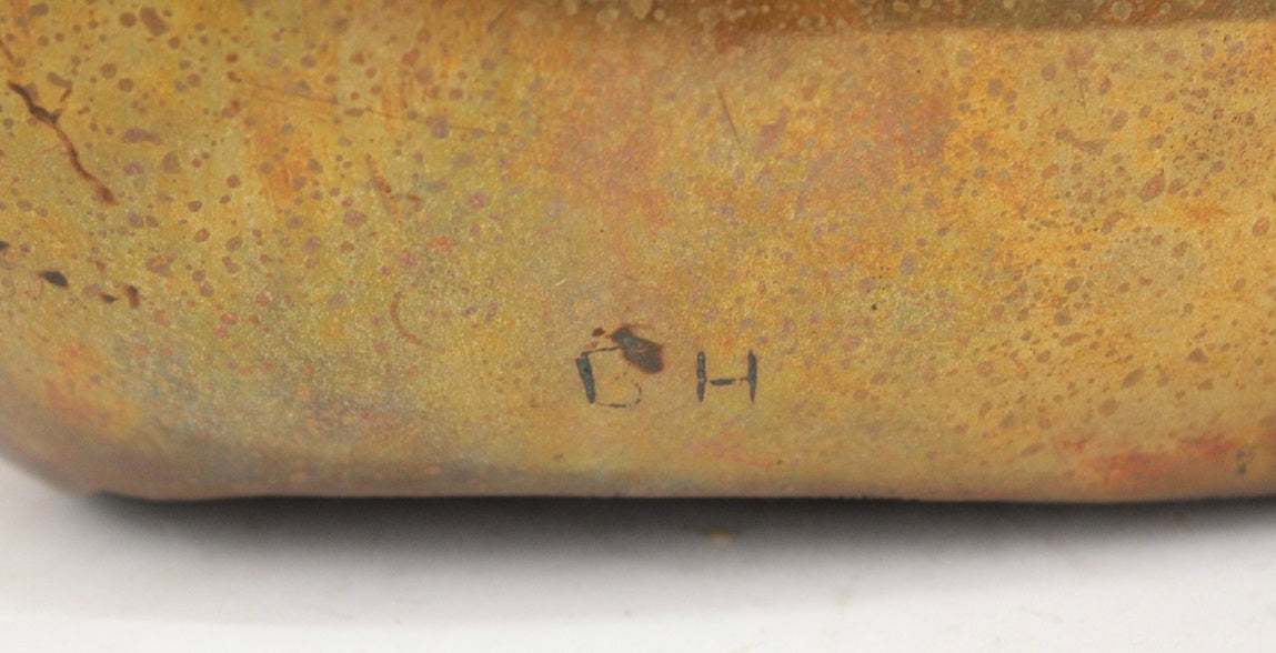This fine sculpture, signed with illegible monogram, blends influences of Brancusi's purity, Moore's abstraction and Modigliani's lines and forms in its' cubist masterful interpretation of the female form. Fine heavy cast with beautiful patina.