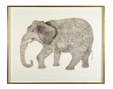 "Elephant" a Lithograph by Karen Usborne ( American. b. 1941 ). Titled, signed, numbered 23/60 and dated 1971.