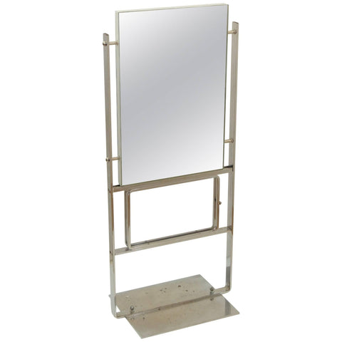 Good Condition: Structurally sound - some loss to silvering of mirrors, wood newly refinished and chrome polished. Rust spotting to frame, generally not noticeable on main body - significant amounts to flat base portion.
