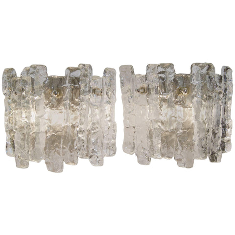 Excellent Kalmar ice glass wall sconces, each having three heavy pieces of ice glass.