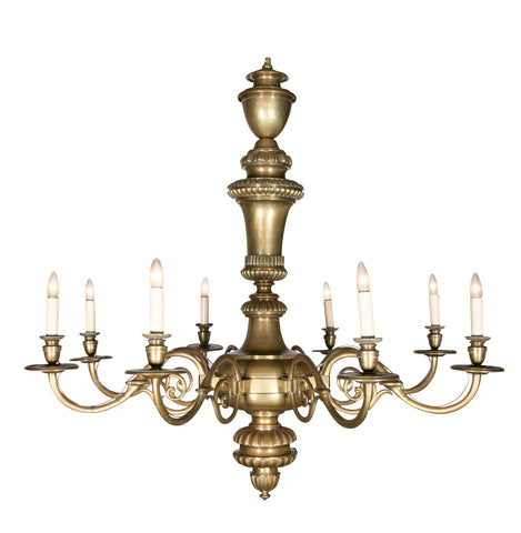 A "Great Hall" solid brass chandelier of important and rare size with removable eight arms. Circa 1890.