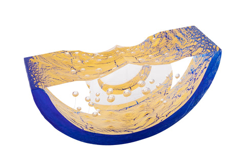 "Thimbles Boat" a contemporary blue and clear with splashes of gold glass sculpture by Steven Weinberg ( American. b. 1954 ). Circa 2005.