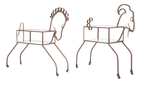 Unique Pair of Wrought Iron Side Tables in Goat & Horse Forms
