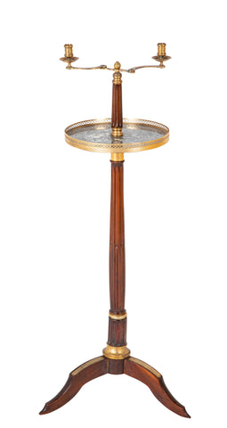 Unusual Louis XVI style two lite table stand with bronze fittings, pierced gallery and marble top.  Circa 1850's.