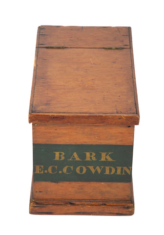 Whale ship agent's document box from the whaling bark "E. C. Cowdin", mid 19th century. The Cowdin sailed from New Bedford and Dartmouth, MA between 1845 - 1860. Perfect as a side or cocktail table.