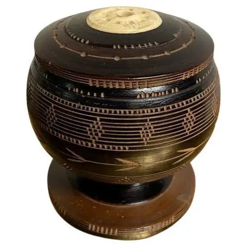 Whaler Made Bone and Ebonized Wood Round Lidded Box