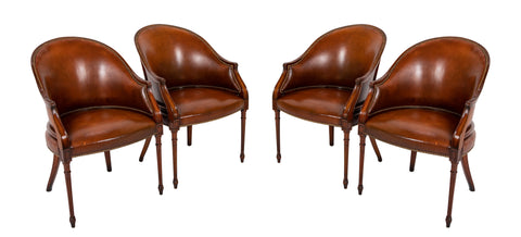 12 Mahogany and Leather Regency Style Armchairs - Available in Various Sets of 4 and 2