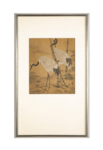 19th Century Chinese framed painting on silk of Cranes. Circa 1880.