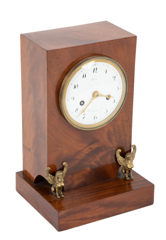 19th Century French Mahogany & Sphinx Mounted Mantle Clock