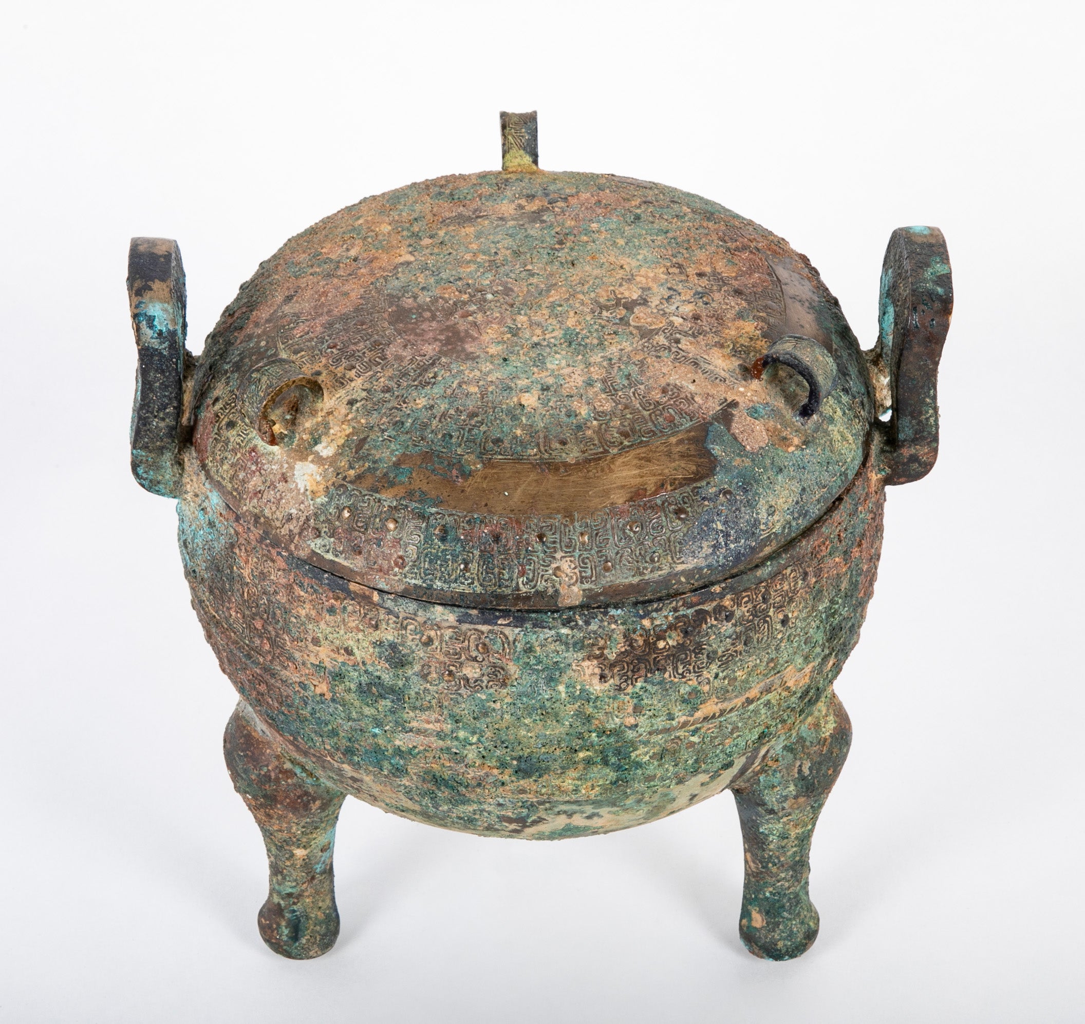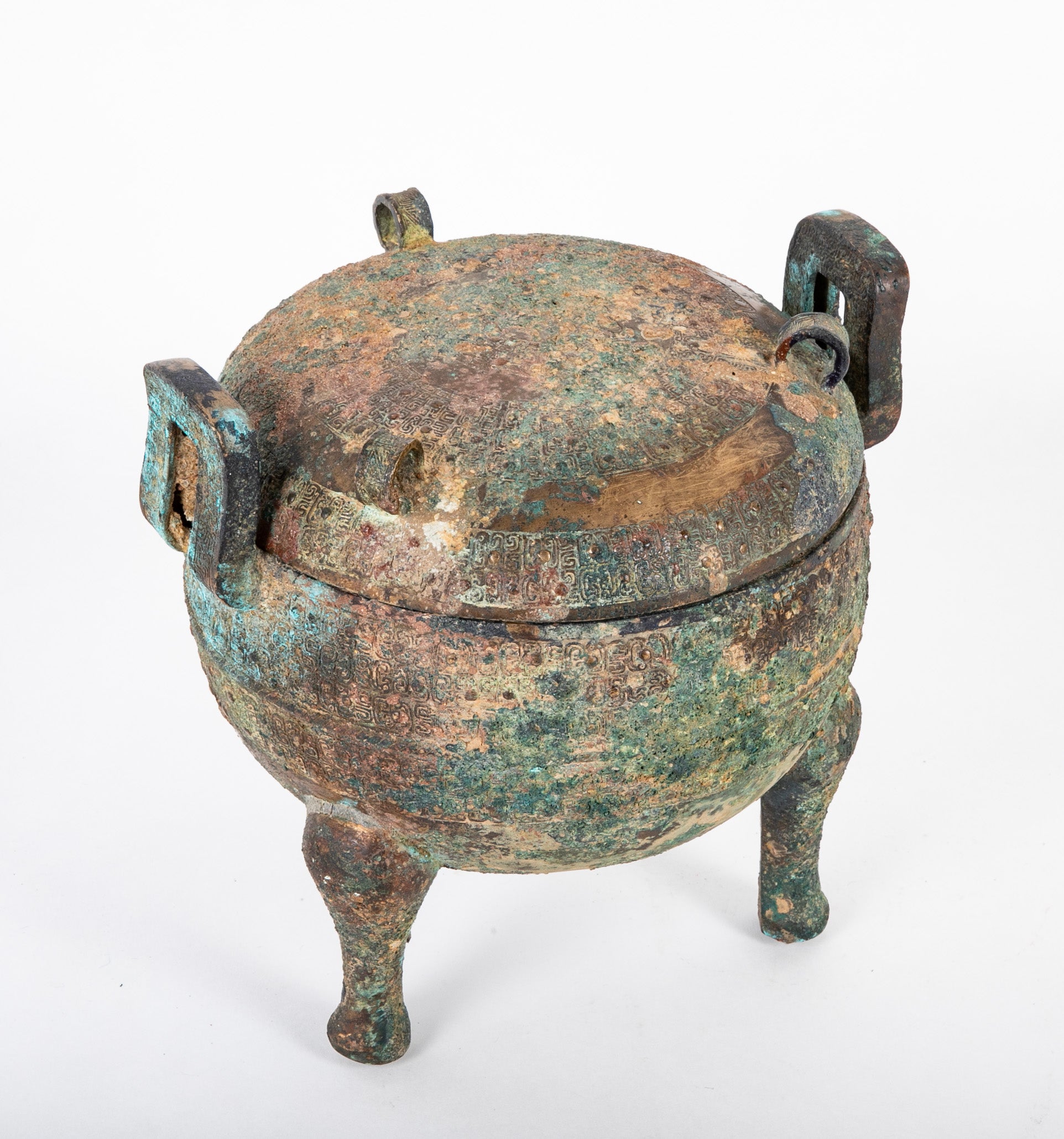 A Chinese Archaic Ding Style Bronze Covered Vessel