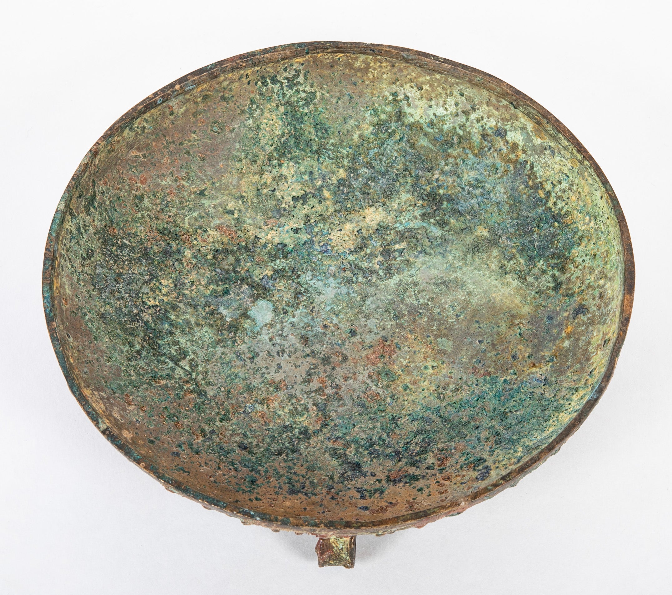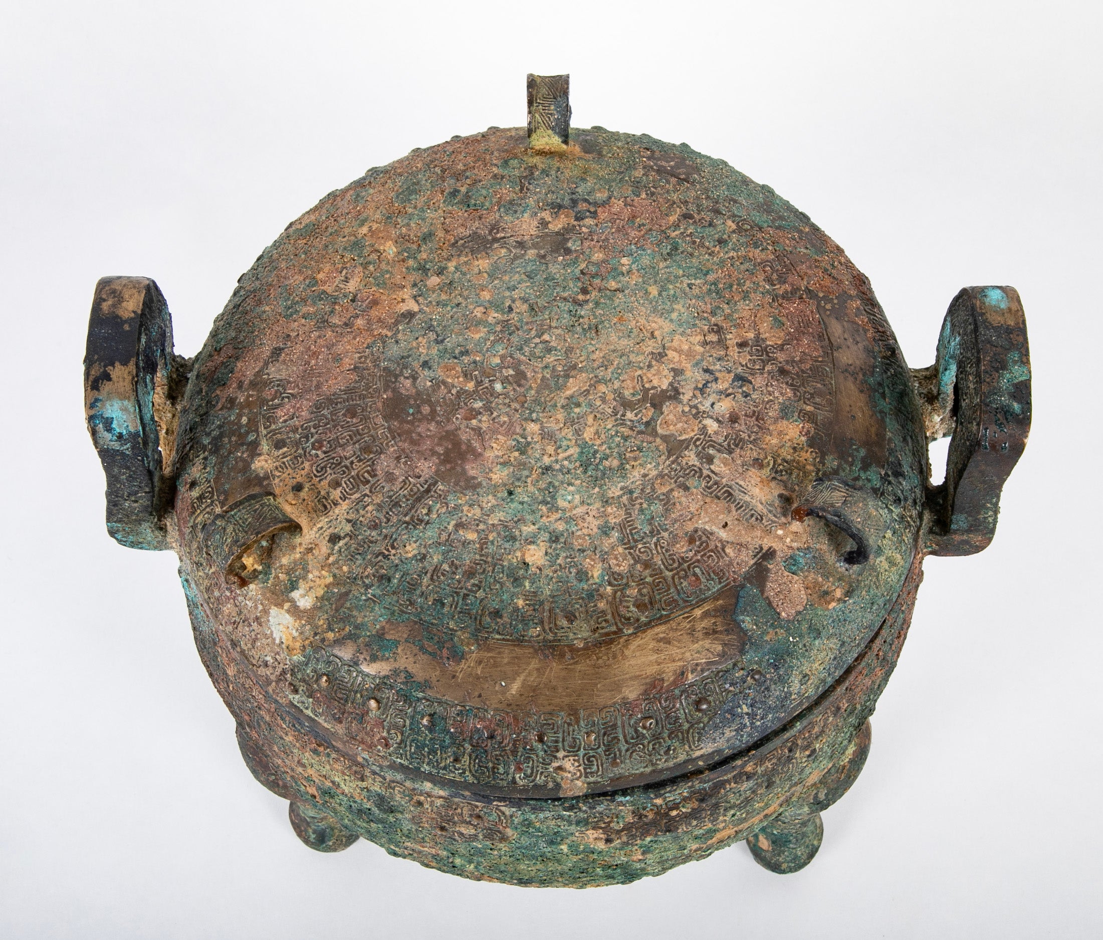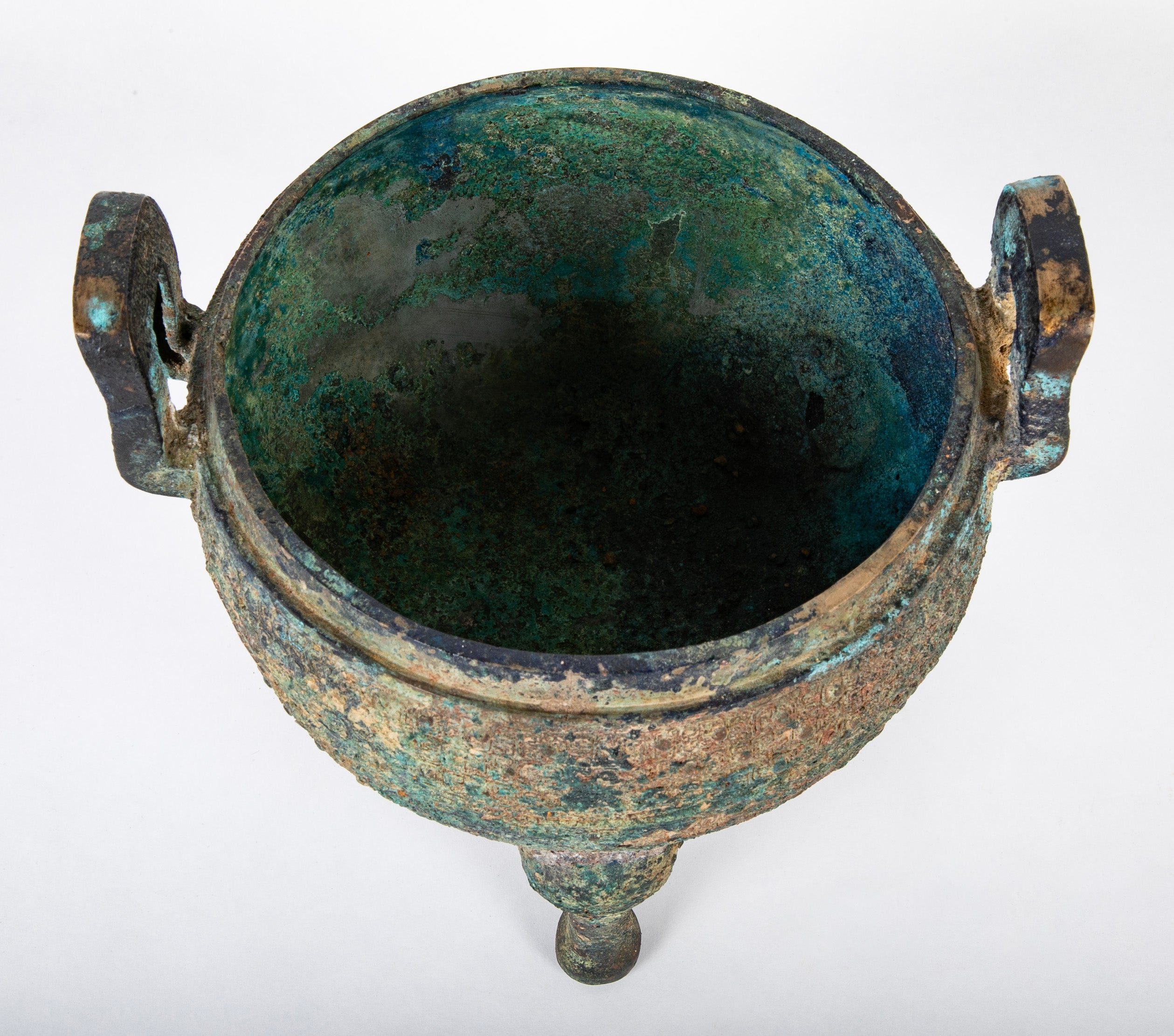 A Chinese Archaic Ding style verdigris bronze covered vessel. Late 19th century.