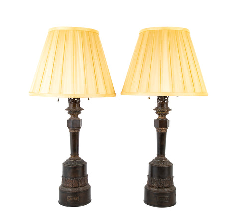 A Pair of Early 19th Century French Fluid Lamps Now Electrified