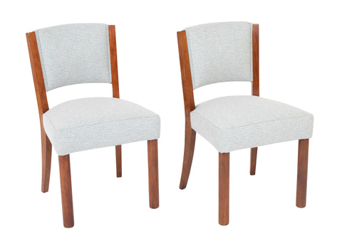 A pair of presumably French walnut side chairs newly upholstered in Rogers & Goffigon fabric.  Circa 1930's.