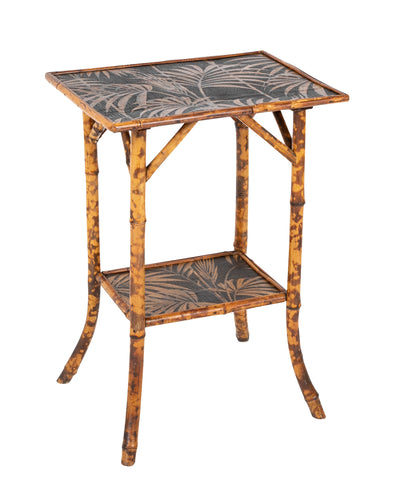 An English rectangular two tier bamboo table. Presumed later top. 20th Century.