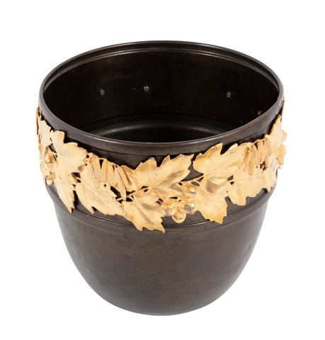 Bronze planter with gilt bronze grape & grape leaf motif. German, by Anezin Kayser. Circa 1900.