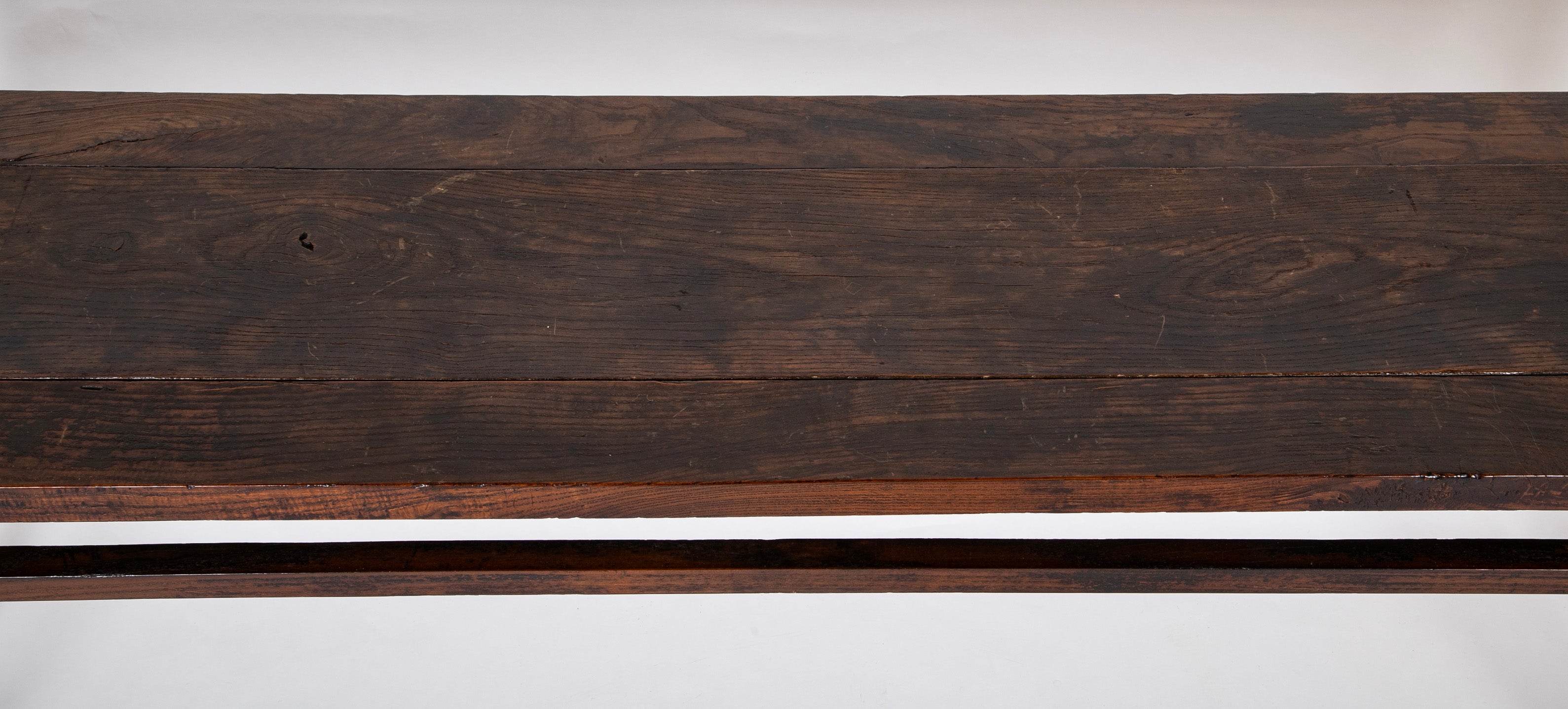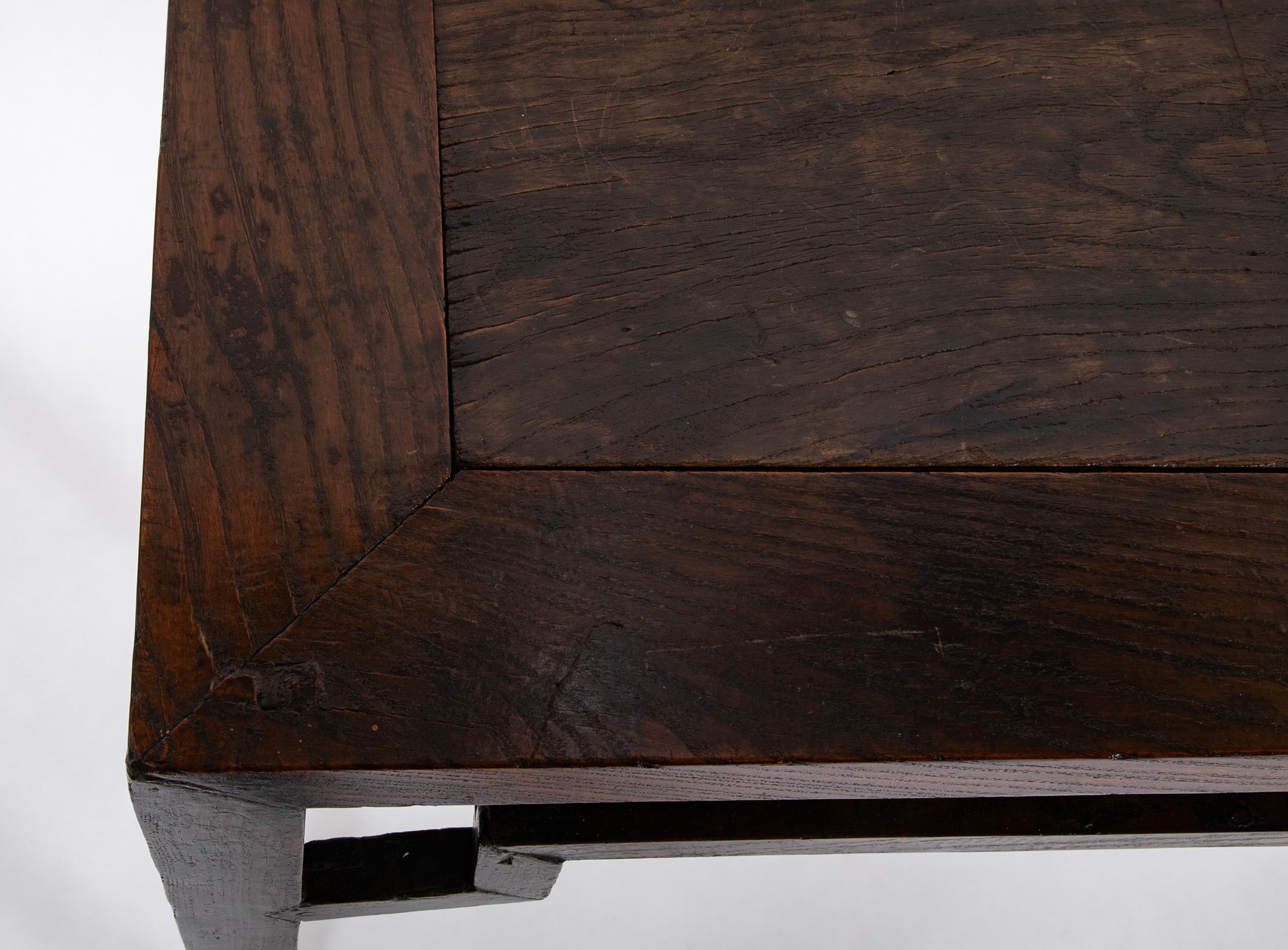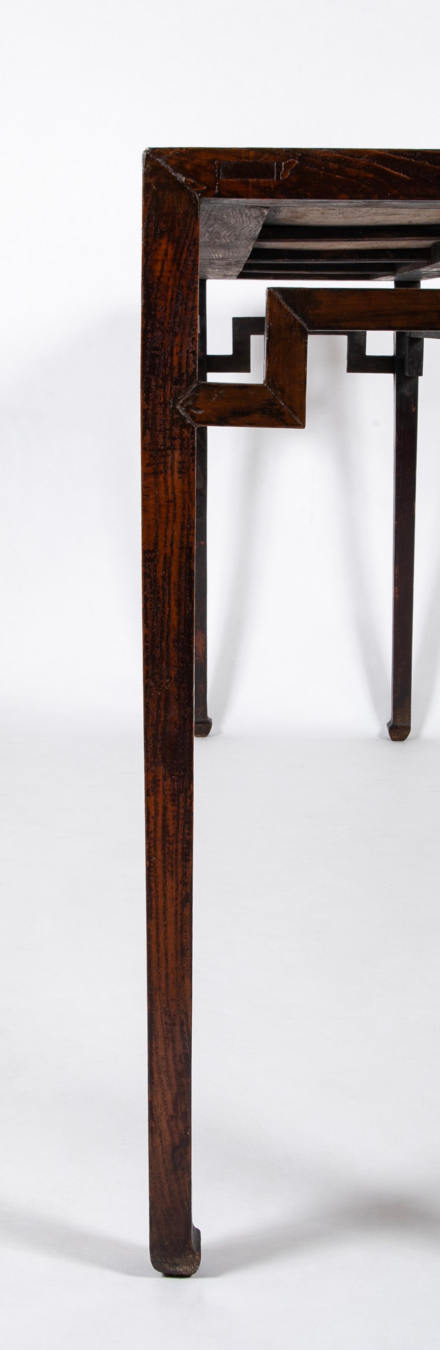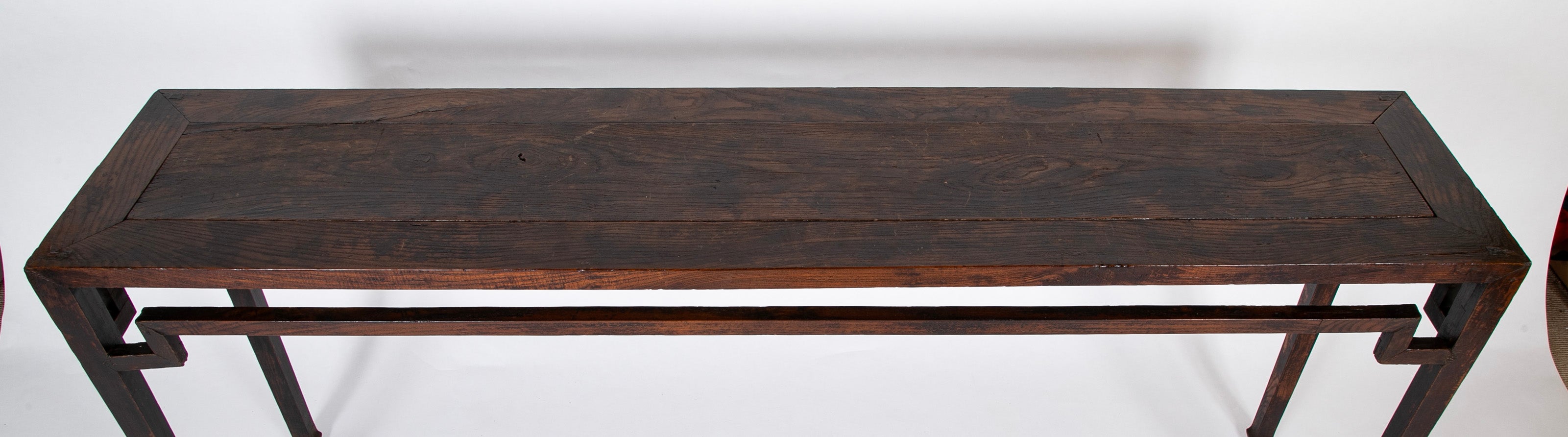 18th century Chinese elm console table with square form humpback stretchers.  Shanxi Province.