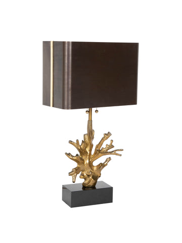 A 20th Century gilt bronze Coral form lamp on marble base with metal shade. Marked Maison Charles. France.