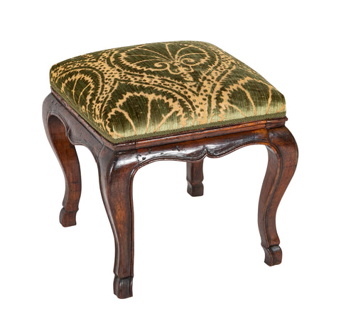 Early 17th Century French Cabriole Leg Walnut & Upholstered Stool