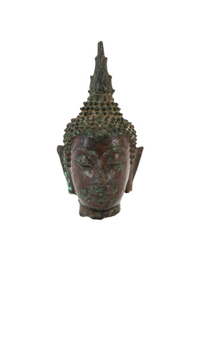 Early 19th Century Thai bronze head of Buddha on contemporary lucite stand.