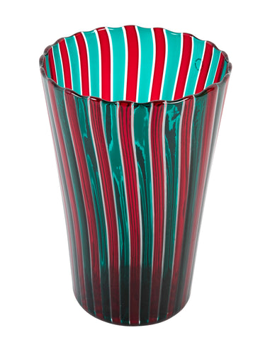 Gio Ponti for Venini Red and Green "A Canne" Glass Vase