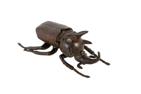 Japanese Patinated Bronze Rhinoceros Beetle with Opening Back