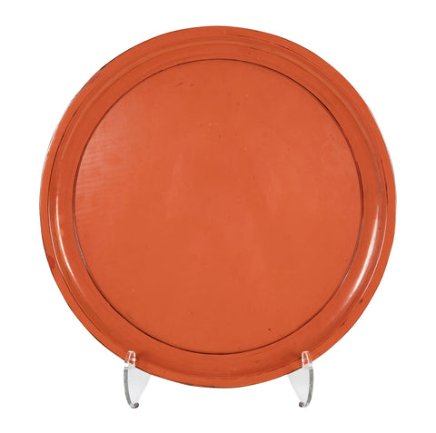 Large Round Japanese Negoro Lacquer "Marubon" Tray