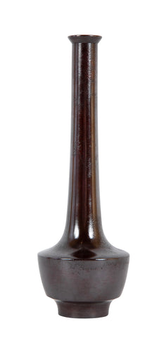 Nakajima Yasumi II ( Japan. 1905 - 1986 ) patinated bronze bottle vase with elongated neck and box. Seal stamp. Mid 20th century.