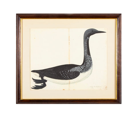 Offset lithograph of "Black Throated Diver" from "The Great Bird Book" by Swedish botanist and ornithologist Olof Rudbeck The Younger ( 1660 - 1740 ). Printed in Italy circa 1985.