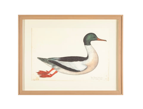 Offset lithograph of "Goosander Male, PL 22" from the "The Great Bird Book" by Olof Rudbeck The Younger, Swedish botanist and ornithologist ( 1660 - 1740 ). High quality offset lithograph printed in Italy. Circa 1985.