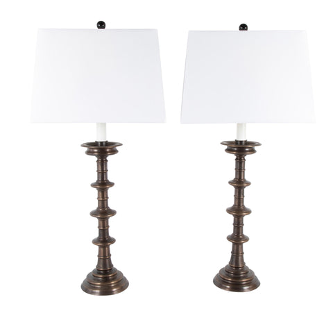Pair of Ecclesiastical bronze pricket sticks now as lamps.