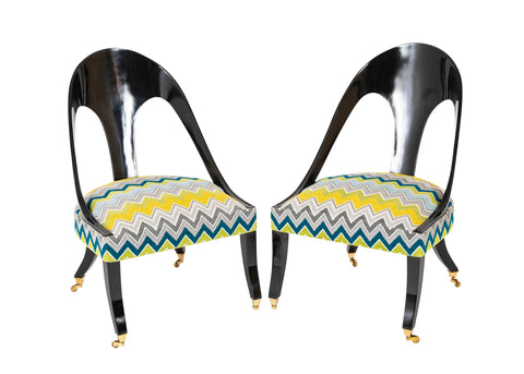 Pair of Regency style ebonized spoonback chairs. Mid 20th Century.