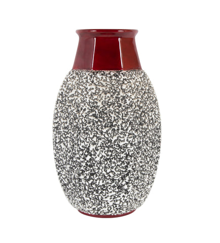 Paul Millet Vermiculated White on Black Ceramic Vase with Red Neck