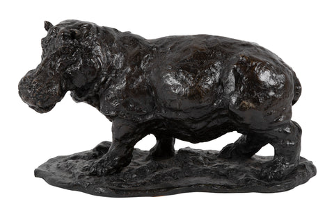 Robert Godefroy Patinated Bronze Sculpture of a hippopotamus  "Les Sources du Nile".  Signed, titled and numbered 4/8.  France.  20th Century.