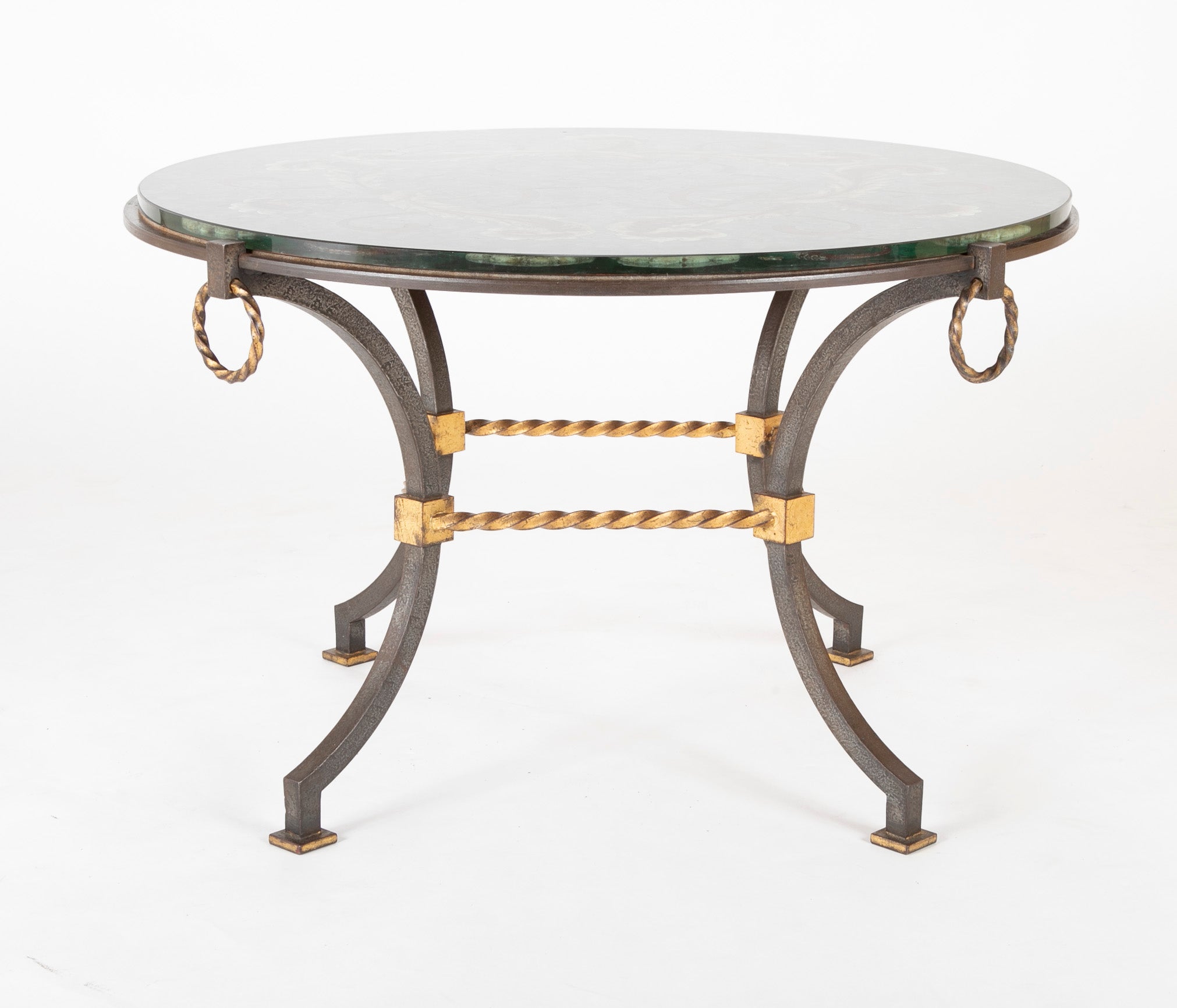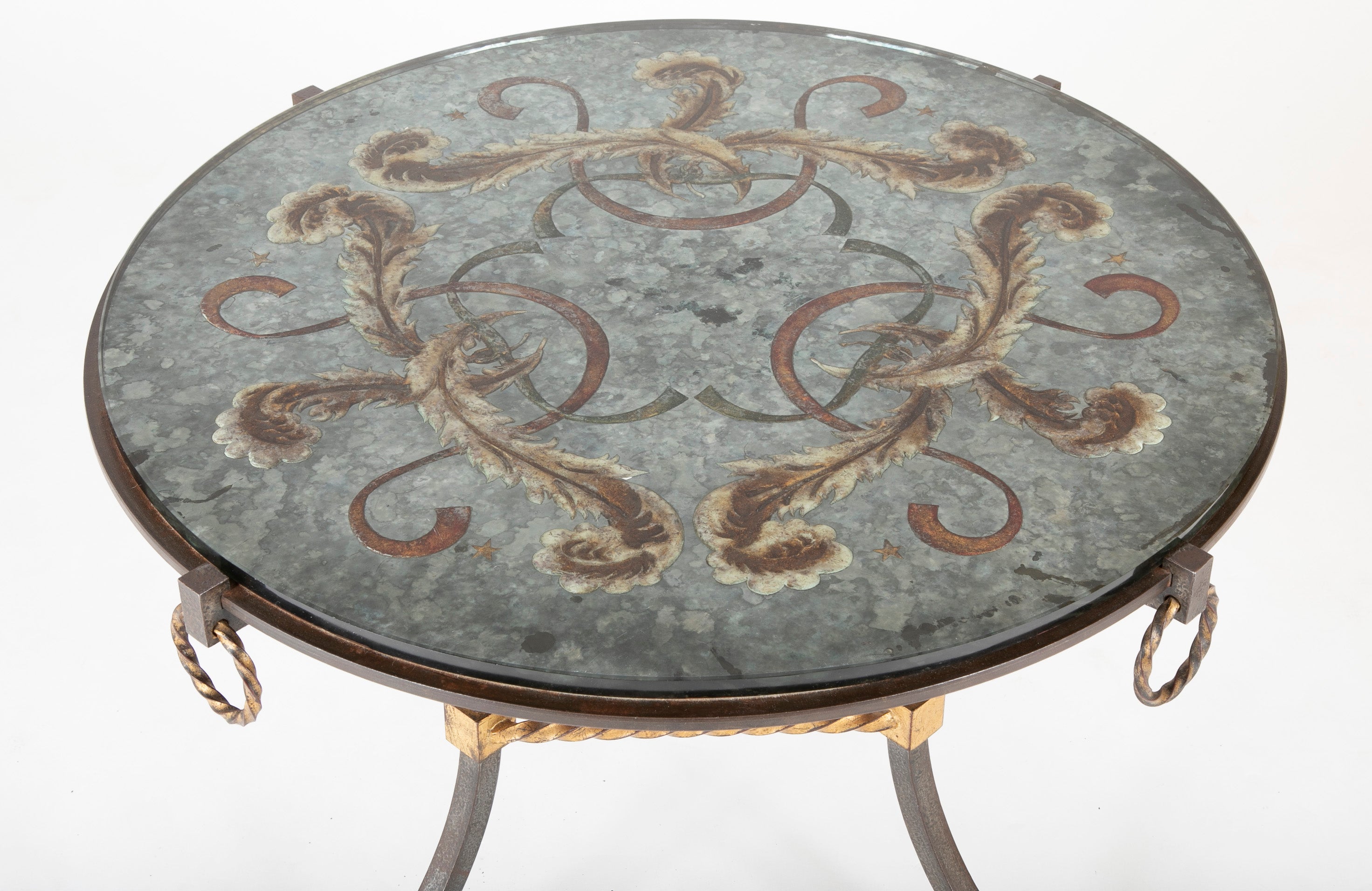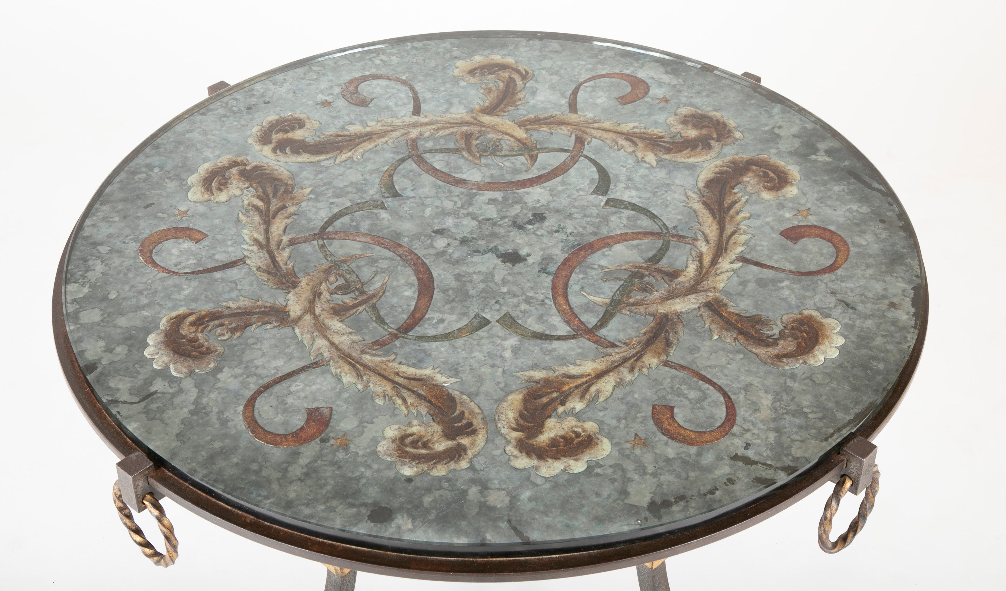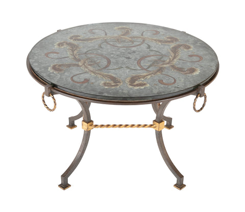 Round Wrought Iron & Églomisé Coffee Table Attributed to Maison Jansen