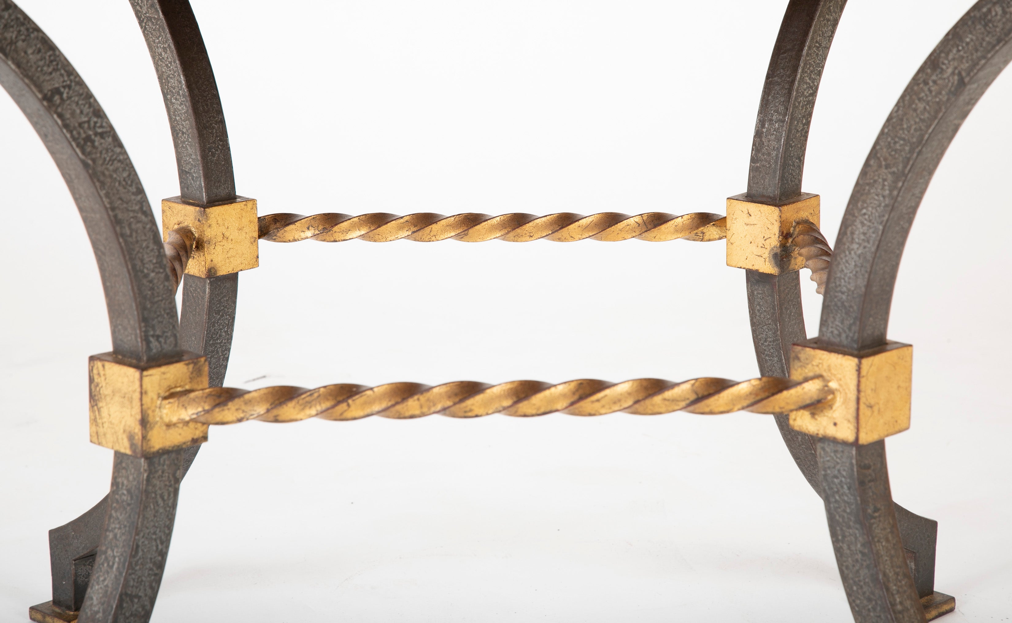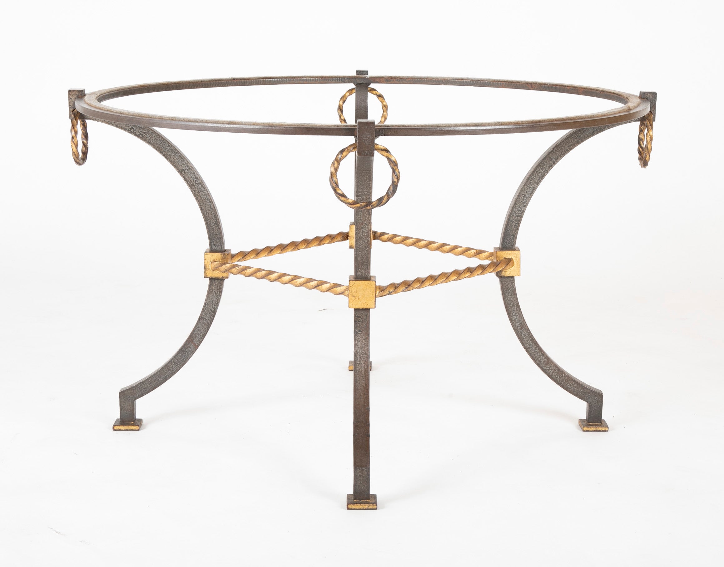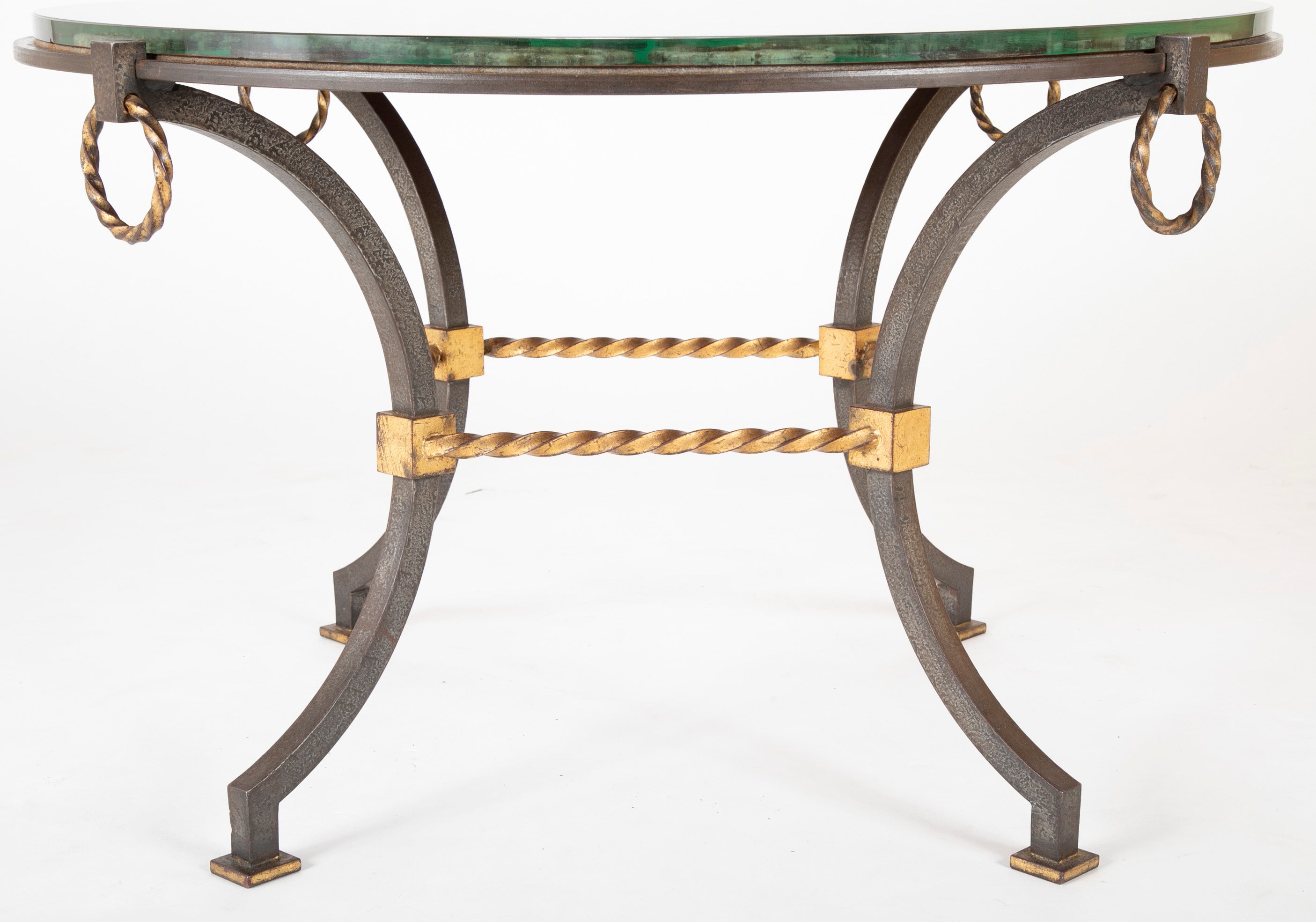 Round Wrought Iron & Églomisé Coffee Table Attributed to Maison Jansen