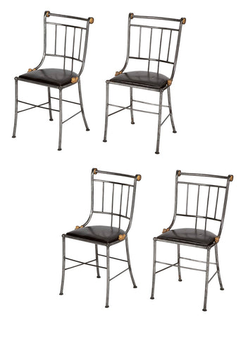 Set of Four Distinctive French Steel & Parcel Gilt Metal Side Chairs