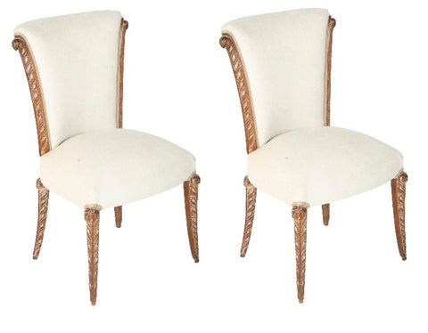 Pair of French Maison Jansen cerused oak dining chairs. Circa 1940's.