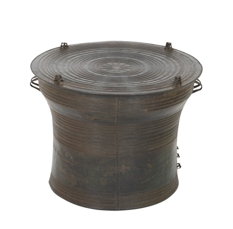 Southeast Asian Bronze Rain Drum with Triple Stacked Piggy-back Frogs & a Procession of Elephants