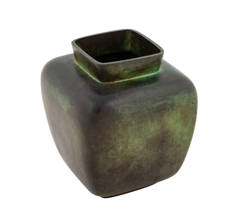 Swedish Gab Guldsmedsaktiebolaget round cornered square patinated bronze vase. Signed and stamped # 210. Mid 20th century.