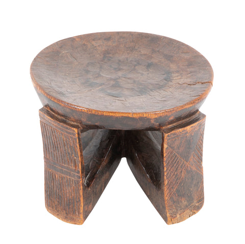Zambia Wood Miniature Stool with Incised Designs on Each Leg