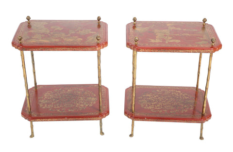 A Pair of French Ormolu Mounted Red & Gilt Japanned Side Tables