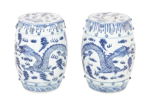 A Pair of Chinese Export Porcelain Stools with Peacock Decor