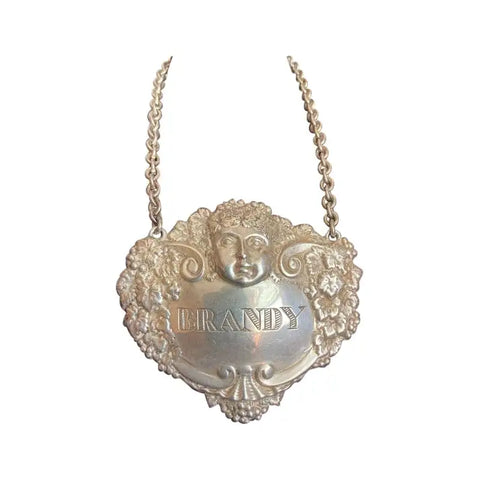 English Sterling Silver Brandy Carafe Label with Dionysus