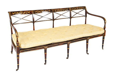 19th Century English Faux Bois Painted Bench with Caned Seat