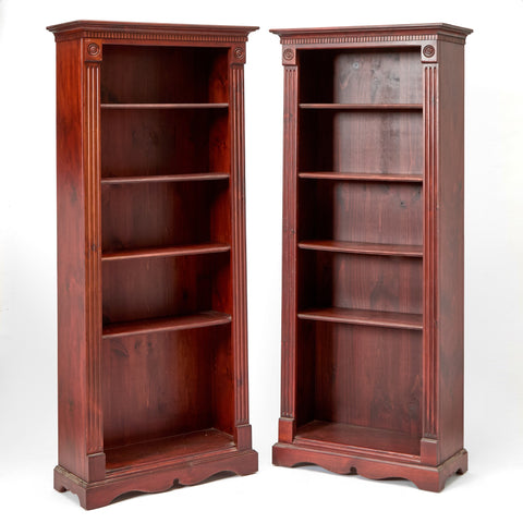 Pair of Late 19th Century American fruitwood Neoclassical open bookcases with adjustable shelves.