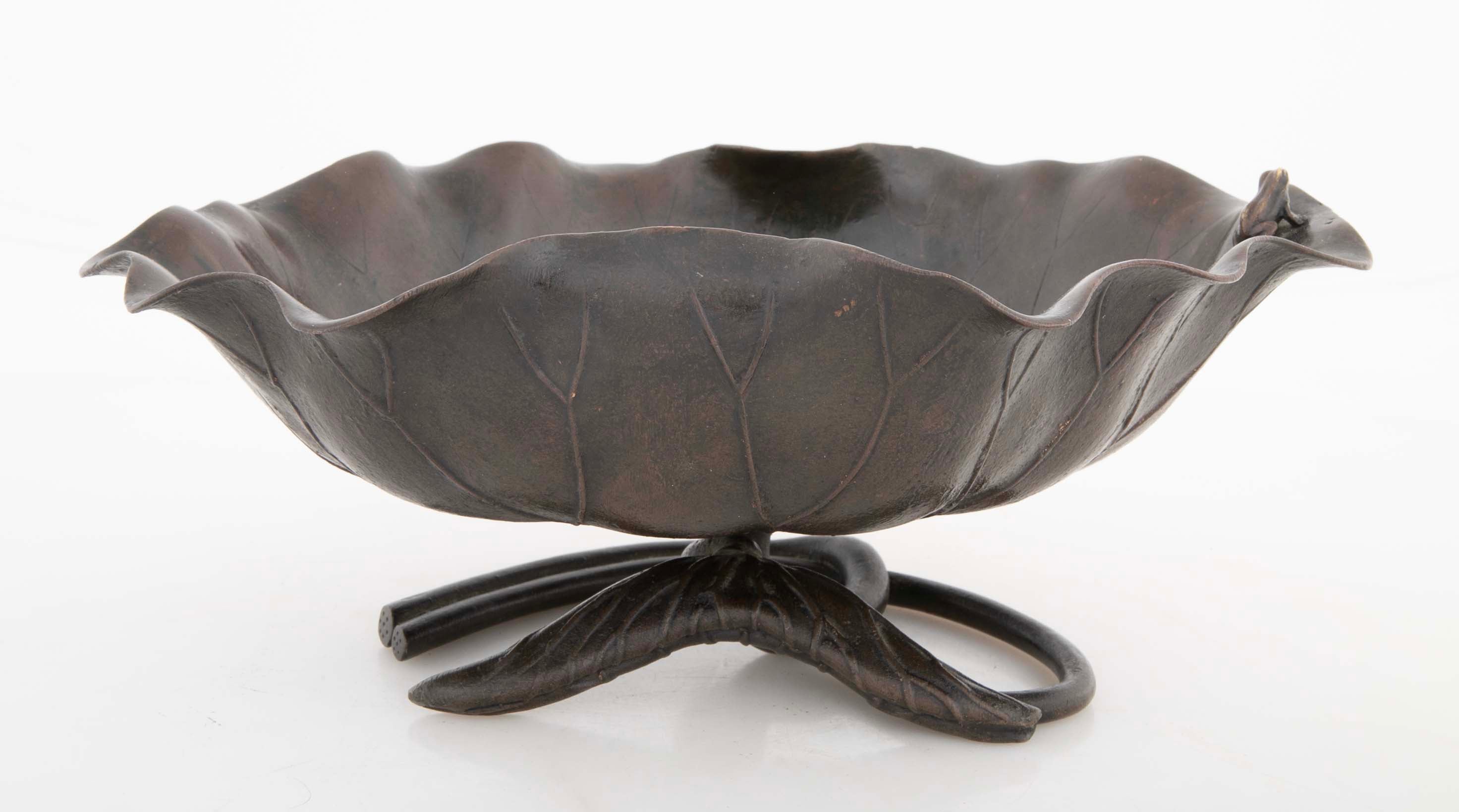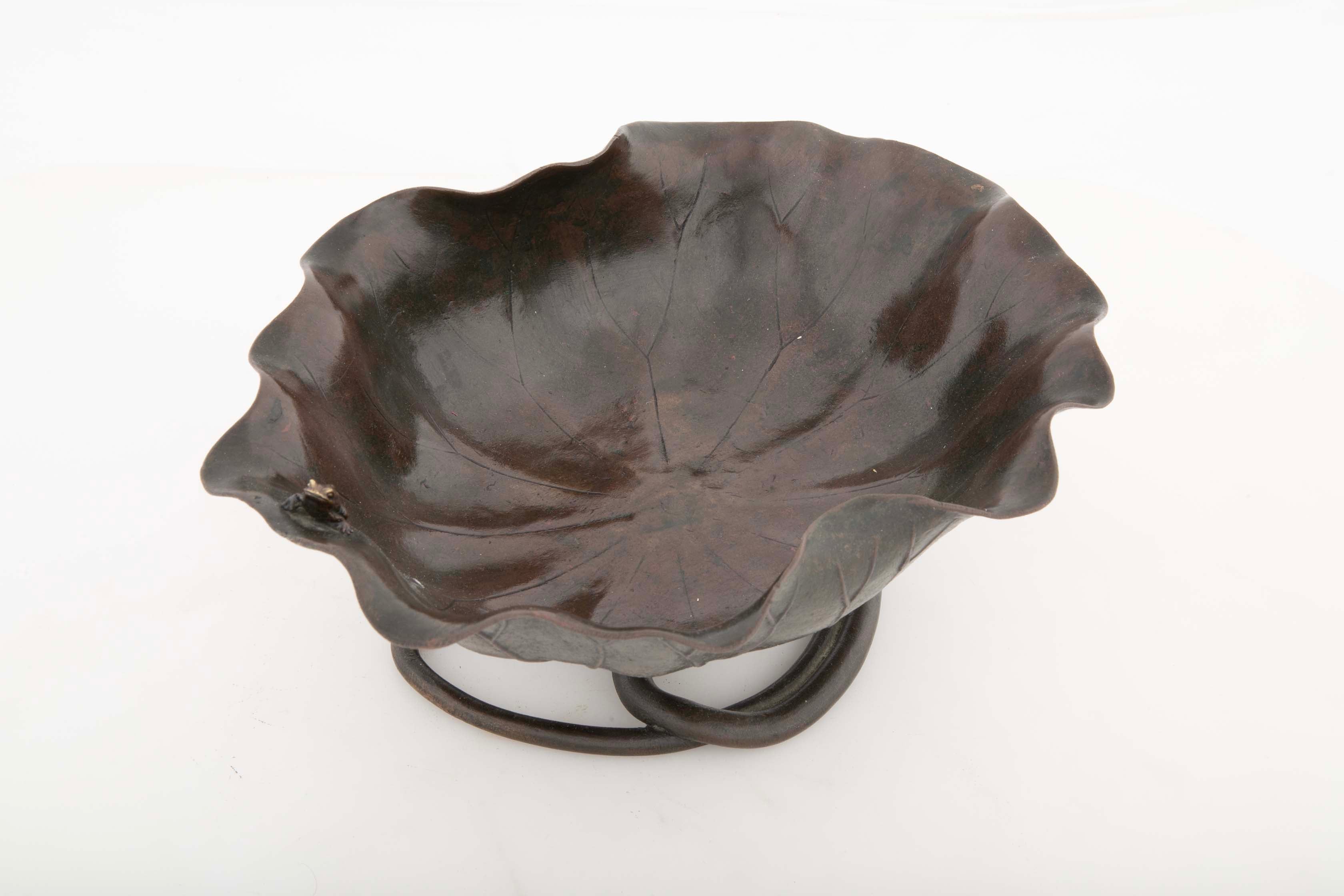 Patinated Bronze Lotus Leaf Shaped Bowl