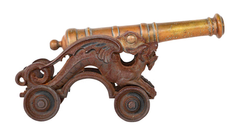 An 18th Century Bronze Cannon Barrel on 19th Century Dragon Shaped Base