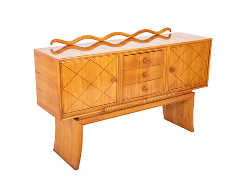 Italian Mid-Century Cherrywood Credenza with Wave Detail Back Rail