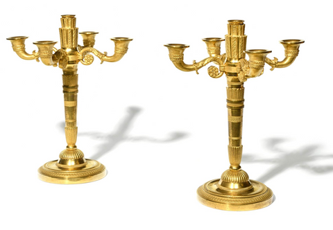 A Pair of Period Empire Gilt Bronze Candlesticks.